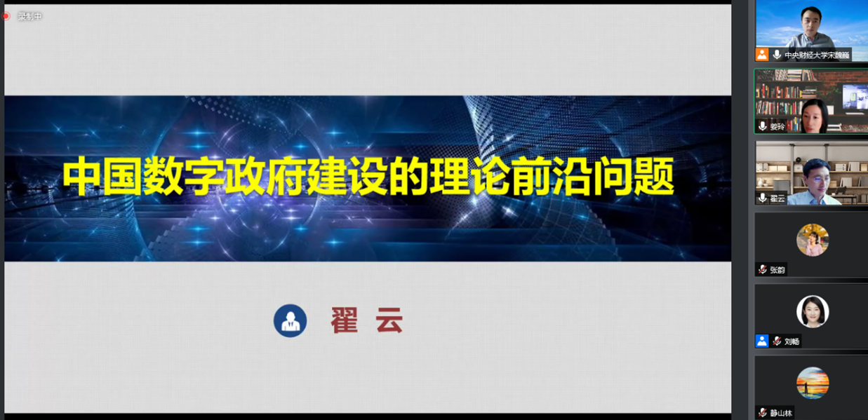 2022年6月15日上午,今年会“为公讲堂”系列学术讲座——“中国数字政府建设的理论前沿”通过腾讯会议顺利在线举办。中央党校(国家行政学院)公共管理部研究员翟云教授受邀作专题报告,来自校内外百余名专家学者、学生参与交流讨论,院长姜玲教授与会开展对话评议。讲座由宋魏巍副教授主持。