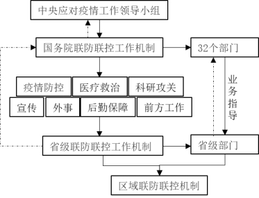 2020年1月20日,经国务院批准同意,新冠肺炎被纳入法定传染病乙类管理。在中央应对疫情工作领导小组的领导下,国家突发公共卫生事件联防联控机制快速触发启动,设立多个工作组,明确职责、分工协作、形成合力,并示范地方,取得了重要的成效。联防联控过程目标明确,针对防控不同阶段的重点问题,进行了控制流动、援助和人员物资调配、筹备恢复生产、防止境外输入等工作,取得了显著效果。