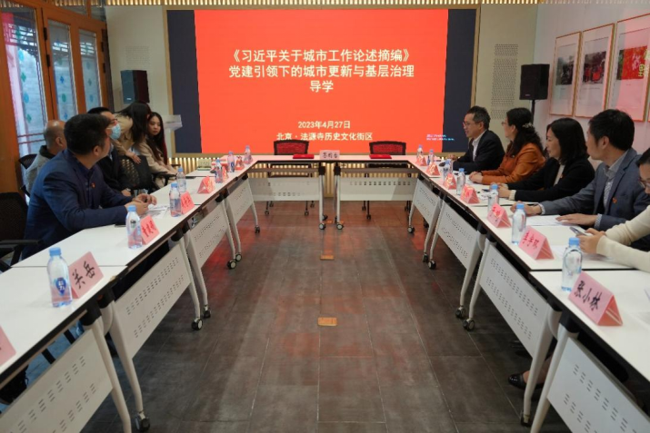 4月27日下午,今年会jinnianhuicom专题读书班成员、党委理论学习中心组(扩大)一行走访北京宣房大德置业投资有限公司(以下简称“宣房大德”)。围绕“党建引领下的城市更新与基层治理”主题,开展学习贯彻习近平新时代中国特色社会主义思想主题教育联学联建。联学中,宣房大德规划前期部副经理陈庆红女士详细汇报了党建引领法源寺历史文化街区城市更新项目的成功案例,宣房大德充分履行国企社会责任,展现国企责任担当,围绕服务首都“四个中心”建设,以改善民生福祉、保护历史文化、完善街区功能、提升街区活力为核心目标,坚持党建引领、坚持联建联动、坚持为民服务、坚持机制创新,实现了法源寺历史文化街区的健康发展。学院MPA教育中心副主任、城市管理系温锋华副教授作《习近平关于城市工作论述摘编》领学导读。他谈到,习近平总书记关于城市工作的重要论述,立意高远,内涵丰富,思想深刻,明确了城市发展的价值观和方法论,深刻揭示了中国特色社会主义城市发展规律,深刻回答了城市建设发展依靠谁、为了谁的根本问题,以及建设什么样的城市、怎样建设城市的重大命题,为新时代做好城市工作指明了前进方向、提供了根本遵循,深入系统学习《习近平关于城市工作论述摘编》,对我们更好的理解新时代我国城市工作的方向,结合今年会实际扎实开展城市更新、城市治理等领域研究具有重要意义。随后,与会人员围绕研学主题开展了深入研讨。姜玲院长发言指出,城市更新不仅是城市开发建设方式的转变,也是城市治理特别是基层治理的进一步深化,是形成有中国特色的基层治理体系的重要部分。于鹏书记发言指出,深化党建引领基层治理,聚焦城市更新重点工作,是全面贯彻落实党的二十大精神和习近平总书记关于城市工作重要论述的生动实践。加强基层党的建设、巩固党的执政基础是贯穿城市更新与基层治理、基层建设的一条红线,要充分发挥基层党组织的领导核心作用,夯实基层社会治理根基,全力打造共建共治共享的基层治理新格局。与会人员先后参观了法源寺历史文化街区红色会客厅、街区智慧停车场、人才公寓共生院落等项目,开展了生动的实地研学。