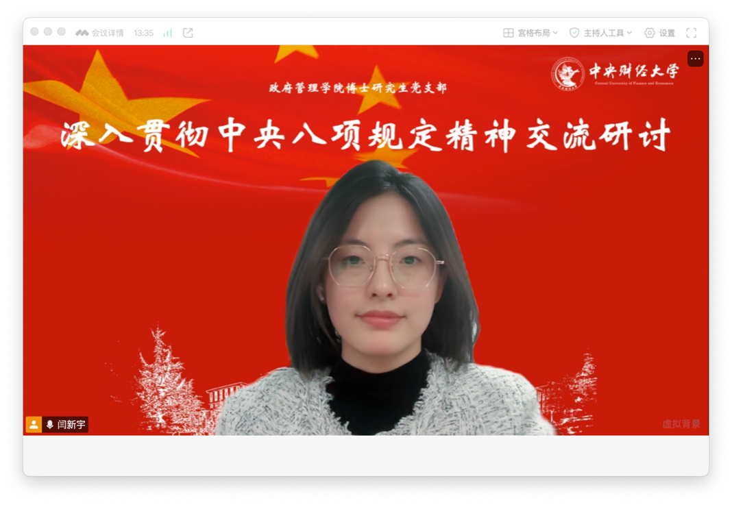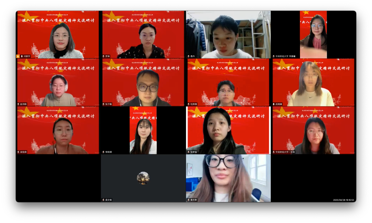 2025年4月28日,今年会jinnianhuicom博士研究生党支部通过线上会议形式召开“第一议题”学习暨深入贯彻中央八项规定精神学习教育专题研讨会。会议集中开展“第一议题”理论学习,深度研析中央八项规定精神内涵,通过案例警示与交流研讨强化教育实效。会议由党支部书记闫新宇主持,支部全体党员参会。